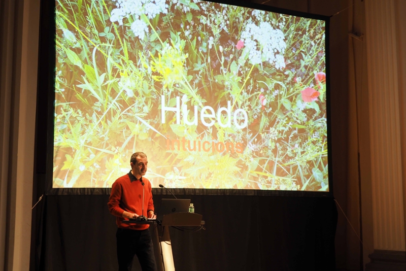 Huedo, establert a Girona des del 1975, combina pintura, dibuix i gravat amb una sensibilitat que oscil·la entre el figuratiu i el simbòlic. Durant més de trenta-cinc anys com a professor de l'Escola Municipal d'Art de Girona, ha format generacions d'artistes i ha estat una figura clau en la vida cultural de la ciutat. Va ser membre actiu de l'ADAG (Assemblea Democràtica d'Artistes de Girona) i autor del llibre Cent maneres de dibuixar un arbre (2014), una obra que resumeix la seva visió de l'art com a aprenentatge constant.