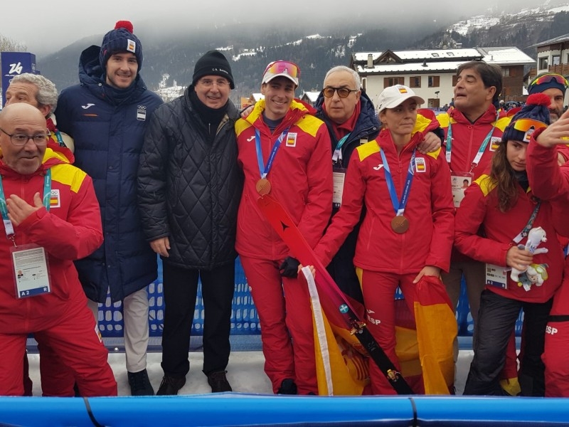 El president de la Diputació de Girona i alcalde de Banyoles ha pogut felicitar personalment l'esquiador, que ha estat bronze avui en els relleus mixtos