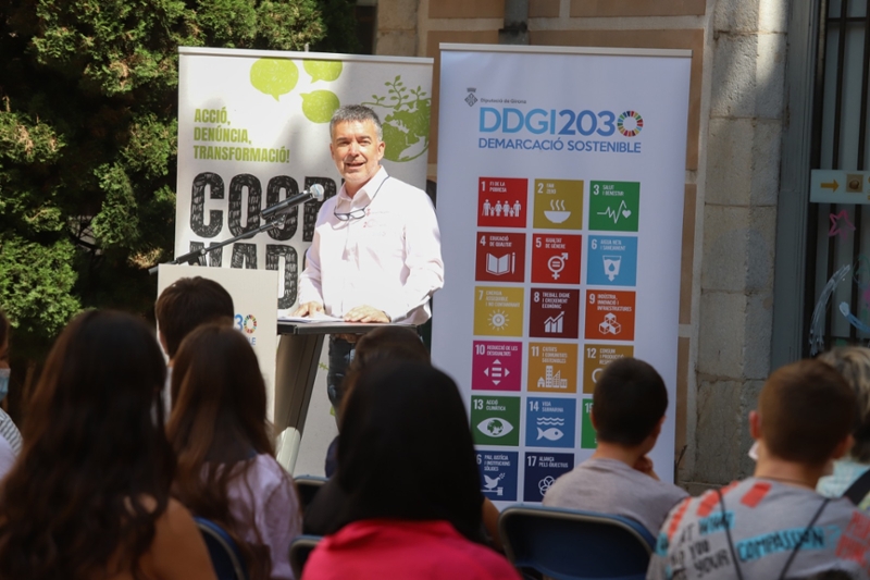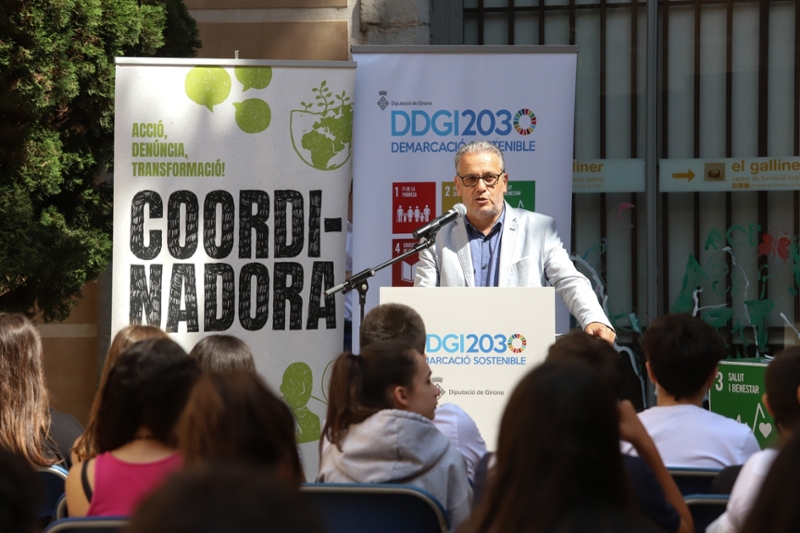 El president de la Coordinadora d'ONG Solidàries de les comarques gironines, Jan Millastre, ha destacat en la seva intervenció: «Els ODS que heu estat treballant als instituts són més necessaris que mai per una vida plena de totes les persones. La Coordinadora forma part d'aquest projecte per posar el focus necessari en els 17 ODS en el dia a dia».